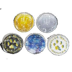ニプリ の 缶 バッジ 用 56mm 径用 缶 バッジ パーツ 単品 ホログラム フィルムになります キラキラのホログラム加工済み透明フィルムで角度を変えると虹色に輝きます 缶バッジのサイズ:56mm フィルムサイズ:66.8Φ 数量:100枚 ニプリ の 缶 バッジ マシン 専用のパーツセットになります 他社製の 缶 バッジ マシン でのご使用は保証いたしませんのでご了承ください。