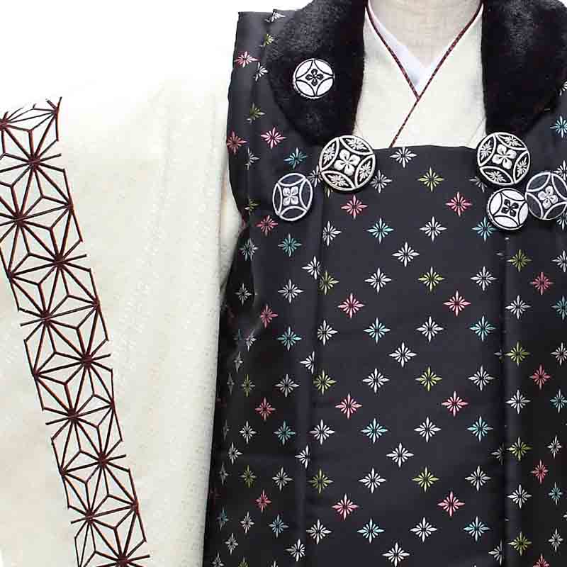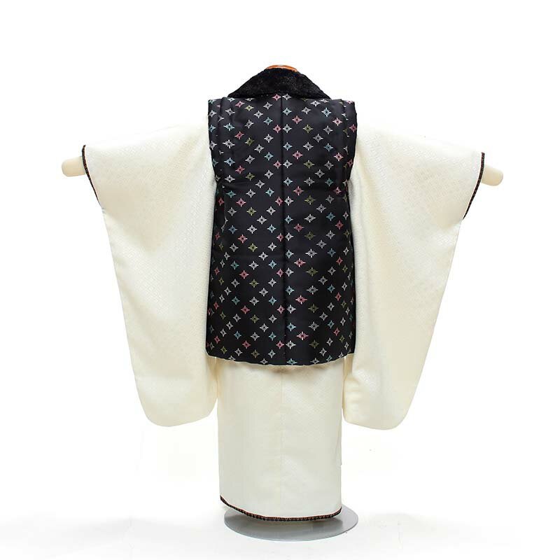 【レンタル】 七五三 男の子 被布 9点セット 被布レンタル フルセット sbw3192 【往復送料無料】 三歳 男児 被布 85cm 七五三着物 白 黒 麻の葉 被布 3歳 ジュニア レンタル着物 七五三 753 前撮り