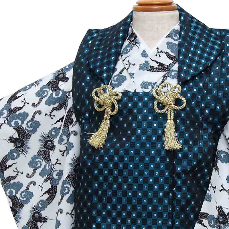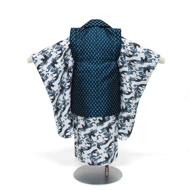 【レンタル】 七五三 男の子 被布 9点セット 被布レンタル フルセット sbw3272 【往復送料無料】 三歳 男児 被布 100cm 七五三着物 白 紺 ネイビー 龍 市松 被布 3歳 ジュニア レンタル着物 七五三 753 前撮り