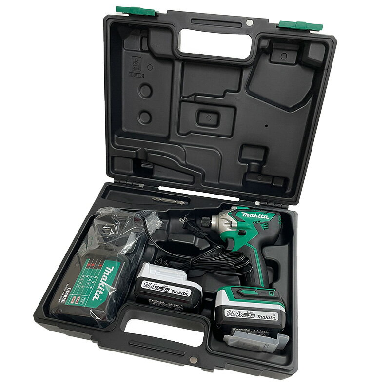 さらなるパワーと小型化を追求 リチウムインライトバッテリ採用 小型・軽量 143mm/1.2kg 従来機より7mm小型化 小型・軽量・高出力、4極モータ 無段変速スイッチ付 LEDライト付 直流14.4V、スライド式Li-ionライトバッテリ仕様 バッテリ2本(2Ah)・充電器付※ライトバッテリ専用。他シリーズのバッテリ充電器は使用できません キャリングケース付き チャック方式:ビットスリーブ式 サイズ(約): 長さ143×幅82×高さ227mm 最大締付けトルク:145N・m 回転数:0〜2,700[回転/分] 打撃数:0〜3,000[回/分] 締め付け能力:22〜125mm(コーススレッド)