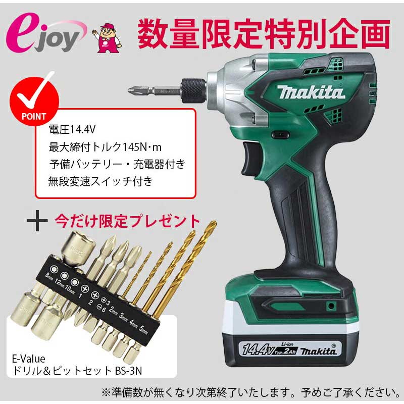 数量限定 おまけ付き ドリル&ビット10PCS マキタ 充電式 インパクトドライバー MTD001DSAX コードレス 0088381778329( makita の人気シリーズ MTD001DSX の後継機 インパクト 電動ドライバ バッテリー付き 14.4V )【GS】