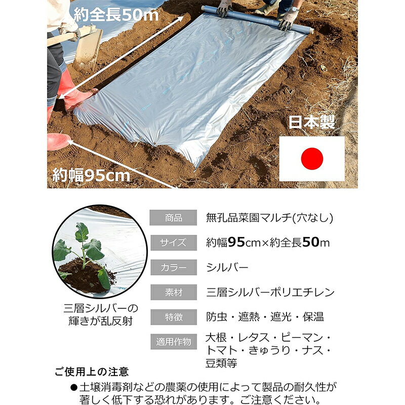 岩谷マテリアル 菜園用 防虫 シルバーマルチ 穴なし 0.02mm厚 95cm×50m 4980356001516