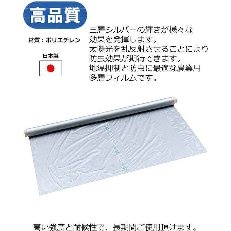 アブラムシやアザミウマなどへの忌避効果が高く、ウィルス病の発生を予防します。 反射効果で地温上昇を抑えます。 色:シルバー サイズ:厚さ0.02mm×巾95cm×巻き50m 材質:ポリエチレン 商品写真は、 お使いのモニター設定、お部屋の照明等により実際の商品と色味が異なる場合がございます。