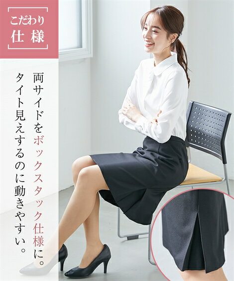 事務服 スカート 単品 レディース 洗える 防汚加工 タイト 52cm丈 上下別売 黒無地 S/M/L 会社 制服 ユニフォーム ニッセン nissen