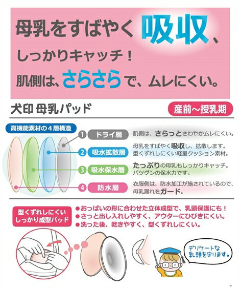 ▼キッズスクールアイテム特集 ▼マタニティ特集 ▼ベビー特集 > ▼キッズルームウエア・パジャマ特集 ▼キッズインナー特集 ▼商品レビュー投稿で割引クーポンプレゼント【産前・産後】犬印本舗 母乳パッド ニッセン nissen ピンクベージュ カラーピンクベージュ サイズY 素材 品質=表側:ポリエステル100% 肌側:ポリエステル100% 原産国 中国製 商品番号 ZZY4F21C0042 コメント 洗って何度でも繰り返し使える!経済的な母乳パッドです。 パッドは4層構造になっており、肌側はさらっとさわやかでムレにくい! 中側には母乳をしっかりキャッチし、保水・拡散する層があり、 衣服側は防水加工で母乳モレを防ぎます 洗った後も型くずれしにくく、乾きやすい成型パッドで、 さっと出し入れしやすく、アウターにもひびきにくい バストの形にあわせた立体成型で、中側がやわらかいクッション素材なので、 バストが敏感な時期に、乳頭保護としても使用ができます。 ・産前〜産後に使う ・年間商材