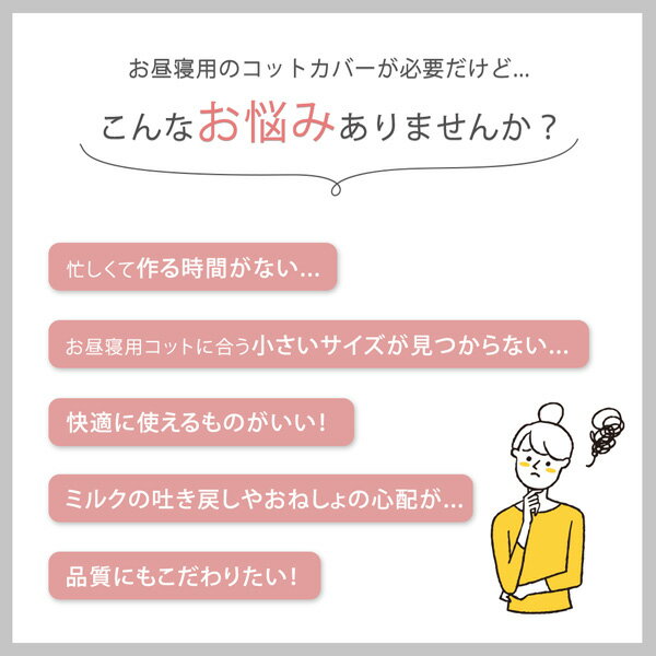 年中使えるコットン100%のタオル地素材の裏面防水 コット用カバー(敷パッド)です。ふんわりパイルが柔らかく、綿100%だから快適に。お子様の汗も優しく吸水。裏面防水タイプだから保育園での吐き戻し対策やおねしょ対策、トイレトレーニングにも。●おすすめポイント・綿100%のタオル地(パイル)素材なので、オールシーズン快適使えます。綿素材は、吸水性が高く水分を吸収して放出して下着などにもよく用いられている素材です。直接肌に触れるからこそ天然素材の綿100%が選ばれています。 お肌がデリケートな方にも。・ふんわりソフトなシンカーパイル生地にパイル長が約3.5mmの少し短めのパイルを採用。快適に普段使いしやすい長さにしました。シンカーパイルは表面だけにループのあるパイル地で、柔らかくふんわりとした肌ざわりが特徴です。・裏面はしっかり防水ラミネート加工。防水(PUコーティング)加工を施しているのでおしっこや吐き戻し対策に。 縫い目の上から加工をしているので水分を通しません。 コット本体に水分を通さないので安心です。・選べるカラー 優しい印象の3Colorから選べます。 グレージュ/オリーブグリーン/ペールコーラルピンク・選べるサイズ小さめ約60×101cmサイズ/約60×134cmサイズの大小2サイズから選べます。・4隅にしっかりゴム付きお子様でも簡単に付け外しできるよう、何度も取り外しても問題ないように丈夫な2重縫製、幅広しっかりゴムを採用しました。寝返りしても安心ですよ。・洗えるので、いつも清潔快適にお使いいただけます(ウォッシャブル)。・便利なお名前が書ける名入れラベル付きです!類似商品はこちら防水シーツ ベビーシーツ ベビー 敷きパッド 1,990円~防水シーツ 敷きパッド 防水おねしょパッド お1,970円~防水シーツ ベビーシーツ ベビー 敷きパッド 1,990円~ 敷きパッド 防水敷きパッド 綿100% 防水5,489円~敷きパッド 防水 おねしょパッド シングル ピ2,620円~敷きパッド 綿100% 防水 手洗いできる マ2,519円~ボックスシーツ シングル セミダブル ダブル 3,940円~プレイマット 丸形 円形 直径90cm 洗える4,980円敷きパッド 洗える 防水/ 吸湿 発熱 フラン5,489円~新着商品はこちら2025/11/21ベッド ショートセミシングル 省スペース設置!16,190円2025/11/21省スペース設置!2段宮棚・コンセント付き木目調16,190円2025/11/20ソファ カウチソファ| クッション付き ファブ36,890円再販商品はこちら2025/11/21ハンガーラック 幅120cm 衣類収納 大容量18,390円2025/11/20キャビネット 北欧 引き出し付き 幅79 大容23,540円2025/11/19ラグ 夏用 接触冷感キルトラグ|レース調キルト7,090円~こちらの商品は土日・祝日の前日・当日に出荷された商品のmy楽天への出荷完了反映は、数日後となります。ご迷惑をお掛けいたしますが、発送連絡はメールをご確認いただきますようお願い致します。(約)幅×長さ60×101cm60×101cm60×134cm60×134cm単位:cm※サイズの誤差は多少発生します。ご了承ください。 コメント年中使えるコットン100%のタオル地素材の裏面防水 コット用カバー(敷パッド)です。ふんわりパイルが柔らかく、綿100%だから快適に。お子様の汗も優しく吸水。裏面防水タイプだから保育園での吐き戻し対策やおねしょ対策、トイレトレーニングにも。●おすすめポイント・綿100%のタオル地(パイル)素材なので、オールシーズン快適使えます。綿素材は、吸水性が高く水分を吸収して放出して下着などにもよく用いられている素材です。直接肌に触れるからこそ天然素材の綿100%が選ばれています。 お肌がデリケートな方にも。・ふんわりソフトなシンカーパイル生地にパイル長が約3.5mmの少し短めのパイルを採用。快適に普段使いしやすい長さにしました。シンカーパイルは表面だけにループのあるパイル地で、柔らかくふんわりとした肌ざわりが特徴です。・裏面はしっかり防水ラミネート加工。防水(PUコーティング)加工を施しているのでおしっこや吐き戻し対策に。 縫い目の上から加工をしているので水分を通しません。 コット本体に水分を通さないので安心です。・選べるカラー 優しい印象の3Colorから選べます。 グレージュ/オリーブグリーン/ペールコーラルピンク・選べるサイズ小さめ約60×101cmサイズ/約60×134cmサイズの大小2サイズから選べます。・4隅にしっかりゴム付きお子様でも簡単に付け外しできるよう、何度も取り外しても問題ないように丈夫な2重縫製、幅広しっかりゴムを採用しました。寝返りしても安心ですよ。・洗えるので、いつも清潔快適にお使いいただけます(ウォッシャブル)。・便利なお名前が書ける名入れラベル付きです! カラー グレージュオリーブグリーンペールコーラルピンク サイズ 60×101cm60×134cm 素材 ●品質:表地=パイル部=綿100%・グランド部=ポリエステル100% 裏地=ポリプロピレン100%(ポリウレタンコーティング)、詰め物=ポリエステル100%●4隅ゴム付※素材の特性上、ご使用中の摩擦により毛羽落ち毛玉が発生し、他のものに付着することがあります。※手洗い後は、脱水機・乾燥機