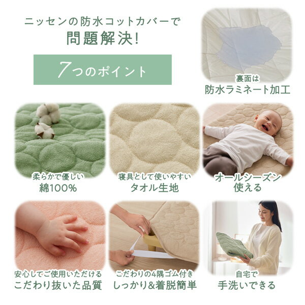《11/27 1:59まで!P5倍×クーポン》コット用 防水シーツ 洗える防水/綿100%タオル地汗取り敷きパッド(Coco.Fa)60×101cm 60×134cm コット コット用カバー 保育園 幼稚園 お昼寝 名前ラベル 入園準備 おねしょ トイトレ 防水 裏面防水 綿100 nissen ニッセン