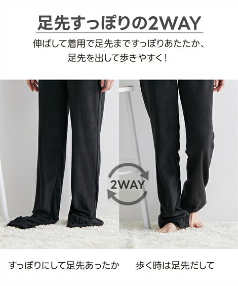 パジャマ・ルームウェア おなかも足も すっぽり フリース ハイウエスト パンツ ニッセン 女性 レディース お腹あったかい 腹巻付き ルームウエア 乾きやすい ボトム 秋 冬