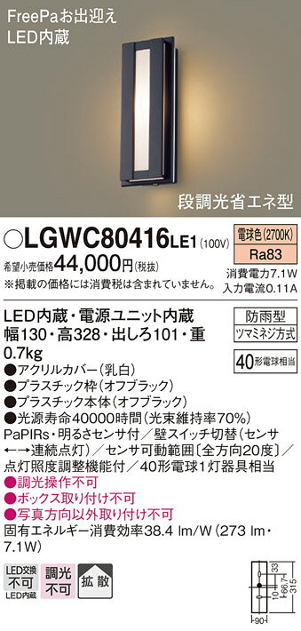 FreePa(段調光省エネ)LEDポーチライト(電球色)LGWC80416LE1(オフブラック)(電気工事必要)パナソニックPanasonic