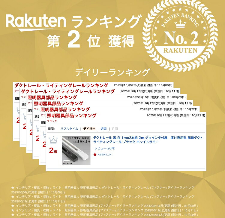 商品特徴 ■1m2本別々使用はもちろん、付属のジョインタで2m連結使用も可能です。 ■優質、厚みがあるアルミと通電性が高い銅線を採用、本体は丈夫で、安全性と耐久性が優れた商品。 ■配線ダクトレールにスポットライトやペンダントライトなどの照明器具が自由に配置できます。 ■フィードインボックス(電源入線部品)・エンドキャップセットなっていますので、施工、取付は楽々。 ■設置空間に溶け込みやすいホワイトとブラック白 (ホワイト) / 黒 (ブラック)二色からお好みの色をお選びいただけます。 【ダクトレール 直付型配線ダクト ライティングレールト商品仕様】 ● 商品情報 ■商品名:ダクトレール 黒 白 1m×2本組 2m ジョインタ付属 ■定格電圧:AC125V ■定格電流 :15A ■周波数:50/60Hz ■カラー:白 (ホワイト) / 黒 (ブラック)から選択 ■材質:アルミ ■寸法(mm):(約) 全長:1103mmダクト長:1000mm 高:19mm 幅:33 mm ■セット内容:レール1m2本(フィードインボックス(電源入線部品)2個・エンドキャップ2個付) + ジョインタ ※ライトは付属しません。 ■取り付ける器具(プラグスポット等)は、各社使用可能。(海外仕様品は除く) ■屋内専用。お取り付けは電気工事店などにご依頼ください。 ● 注意事項 ※取付・取外しは必ず電源を切った状態で行なってください。 ※壁面や斜面など、天井以外の箇所に使用しないでください。 ※水滴などがかかる場所では使用しないでください。 ※照明器具以外のものを取り付けたり吊るすなどの行為はしないでください。 ※指定質量以上の器具を取り付けないでください。 関連商品【楽天1位 】ダクトレール用 LEDシーリングライト 配線ダクトレール...ダクトレール 1.5m セット 直付型配線ダクトレール ダクトレール ...ダクトレール用 LEDシーリングライト12W 調光対応 配線ダクトレー...3,780円3,680円4,200円【楽天1位 6冠達成】ダクトレール 黒 白 1.5m×2本組 3m ジ...ダクトレール 0.5m ライティングレール レールライト 配線ダクトレ...【楽天1位 6冠達成】ダクトレール 1m ライティングレール レールラ...5,980円2,780円3,160円送料無料 ダクトレール コンセント ライティングレール 1m ライティ...【送料無料】ダクトレール 1.5m ライティングレール レールライト1...ダクトレール 引っ掛けシーリング取付 ライティングレール 1.5m ...2,780円5,680円4,680円送料無料 ダクトレール コンセント ライティングレール 1.5m ライ...【楽天1位 4冠達成】ダクトレール用 LEDベースライト 40W型 2...ダクトレール 1m 直付型配線ダクトレール ダクトレール レールライ...4,680円5,780円3,800円