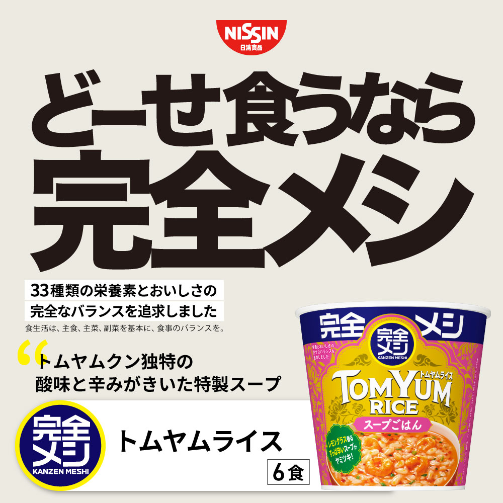 【2箱以上購入&クーポンでさらに6%OFF】 完全メシ トムヤムライス 6食 栄養バランス食 PFCバランス 即席ランチ 夜食 非常食 時短 インスタント 食品 日清 日清食品 公式
