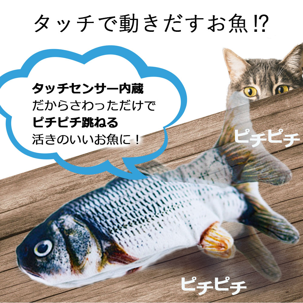 お魚ピチピチ 猫おもちゃ 電動 タッチセンサー 5種の動き マタタビ 魚 動く魚 猫 ねこ ネコ おもちゃ 猫用品 猫のおもちゃ USB充電式 運動不足 ストレス 解消 爪磨き またたび ねこじゃらし ぬいぐるみ 一人遊び ペットトイ