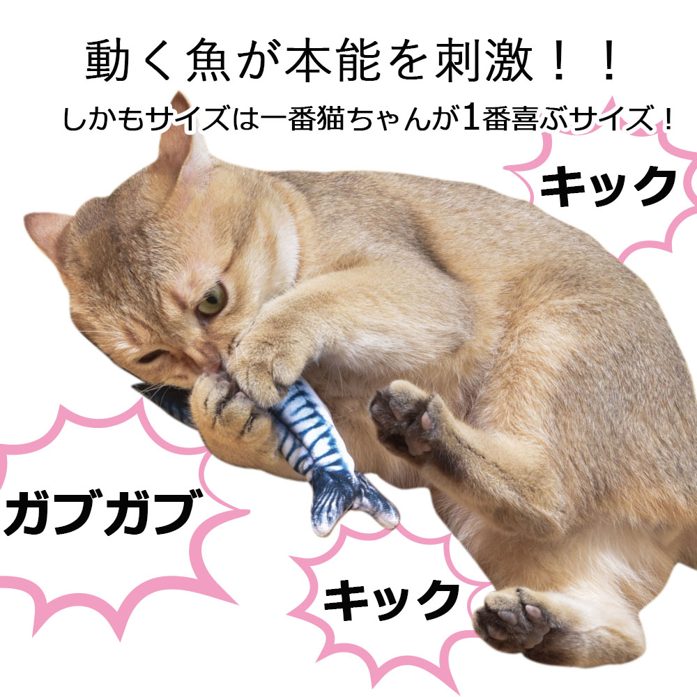 主な特長 ・本体に触れると魚がピチピチ動き出す ・動きは全5パターン ・おなかに入れられるマタタビパック付き ・充電部分を外して洗濯可能 ・猫が喜ぶサイズ 種類 フナ / サバ サイズ フナ:約17.5×8.5×厚み3cm サバ:約20×8.5×3cm 電源 リチウム電池 商品区分 保証タイプB / 通常在庫 →保証・配送について「お買い物ガイド」を確認 備考 ・USBアダプターは付属しておりません。 ・本製品はリチウムイオン電池を使用しています。沖縄など離島への配送は1週間から10日ほどお時間をいただいております。 ・商品写真は実物に近い色に加工していますが、実際の色味と異なる場合がございます。 ・生産ロットによって商品の仕様が若干異なる場合がございます。 猫おもちゃ 猫のおもちゃ サバ フナ 電動 お魚ピチピチ 猫用品 猫用 ネコ用 またたび マタタビ タッチセンサー 自動 噛む キック ストレス解消 運動不足 一人遊び USB充電 充電式 犬 イヌ 子供 ペット用品 ペット玩具 キャットトイ 【広告文責】日翔株式会社 03-5829-8823 【メーカー】日翔株式会社 【区分】日用品Related Items ネコちゃんの爪とぎUFO 1,980円 お魚ピチピチ 1,490円 お散歩ピカピカ 1,180円 肉球ピタット 16枚入 1,480円~ 流せるウェットティッシュ 80枚入 350円~ awan ソープディスペンサー 2,980円