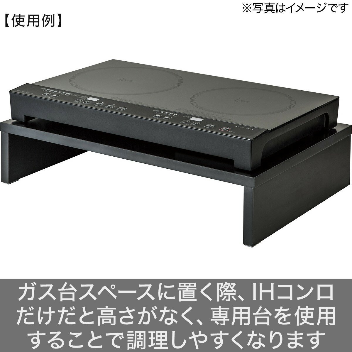 ●ガス台スペースにIHコンロを置く際、専用台を使用することで高さが出て調理しやすくなります●下部の空間にはフライパンなどの収納に便利※本品はニトリで販売している2口 IHクッキングヒーター専用のスタンドです。それ以外のものはのせないでください。【対応商品はこちら】●8971626 2口IHクッキングヒーター(デュー)【お客様組立品】●プラスドライバー必要【取り扱い上のご注意】●スタンドを逆さにして使用しないでください。●天板の端など一部に集中して荷重をかけないでください。色:ブラック主な素材:パーティクルボードサイズ(約):幅54×奥行36×高さ12cm保証年数:1年重量:約4kg組立時間目安:10分 納品方法:玄関先迄納品 日時指定について
