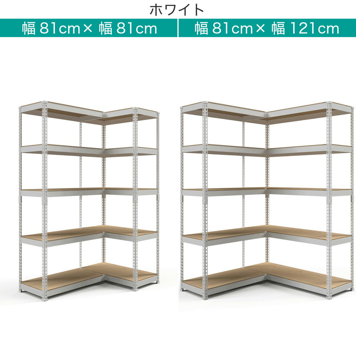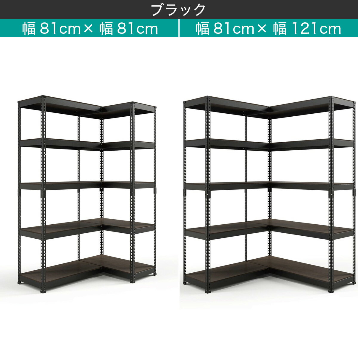 ●お部屋のレイアウトに合わせてI字型にもL字型にも連結できる5段シェルフ×5段シェルフのセットです。●ねじ締め不要のシンプルな構造。組み立てに必要な専用ハンマー付きです。●L字型連結時は、中央の支柱がないのでスッキリ。コーナースペースを美しく、有効にお使いいただけます。●棚板(ボード)は、色違いのリバーシブル仕様になっています。●棚板を乗せるブラケットを逆向きに取付けると、落下防止のサイドガードとしてもお使いいただけます。●メッシュボードは、フック4個付き。バッグや小物を掛けておくのに便利です。●床傷防止樹脂脚カバー付き。※脚カバーを取り付けると最下段の取付穴が隠れるので、下から2段目が一番低い取付可能高になります。■耐荷重 : 棚板(幅80cm)1枚当たり50kg 棚板(幅120cm)1枚当たり30kg メッシュボード3kg※こちらはメーカー直送商品です。納品方法:玄関先迄納品日時指定について4560203294034|4560203294041|4560203294058|4560203294065|4560203294133|4560203294140|4560203294157|4560203294164