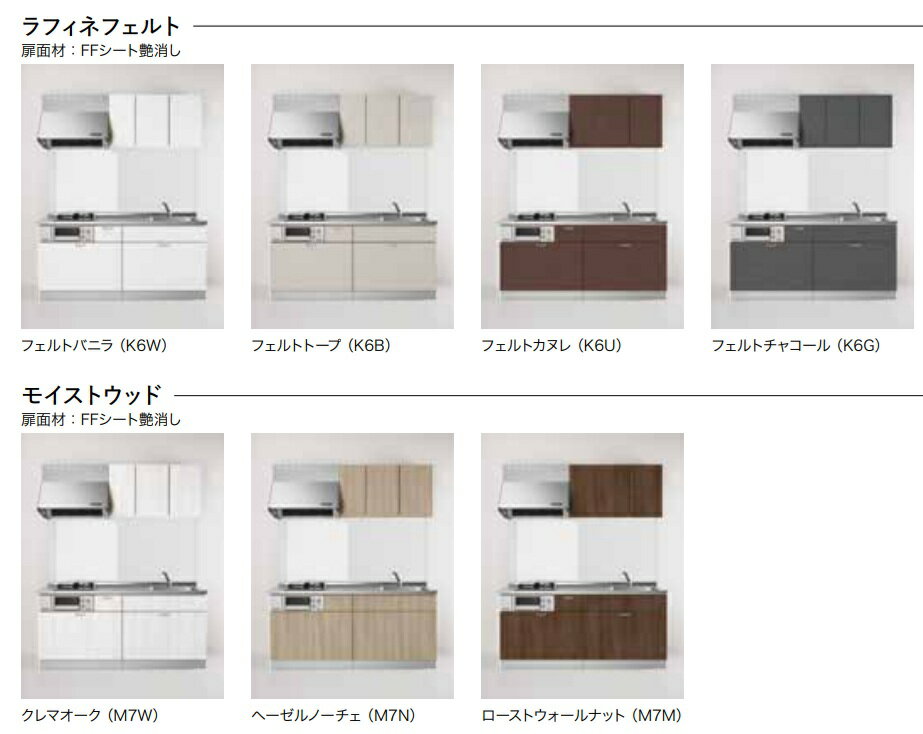 N1 コパンナ キッチン 1800 I型 開き扉 3口ガスコンログリル付き 扉B