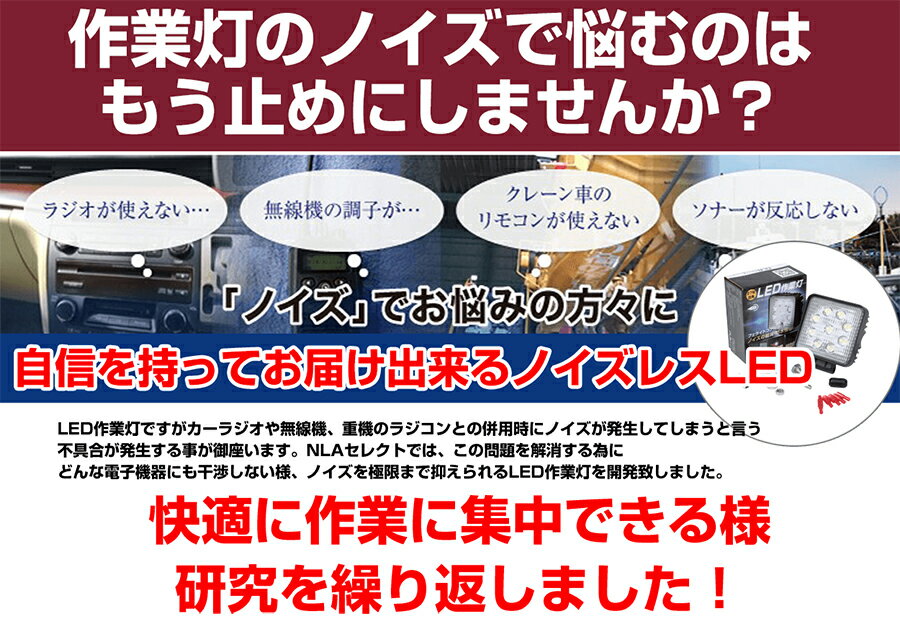 27w LEDノイズレス作業灯 12v 24v トラック 船舶 ホイールローダー 無線併用 路肩灯 投光器【NLAセレクト】