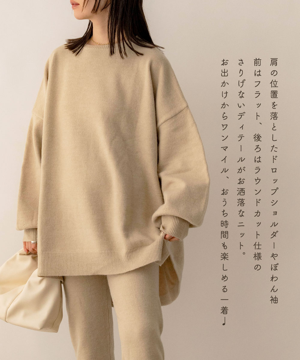 NOAHL|《SETで6,980円*単品3,990円→50%OFFクーポン》《mayoさんコラボ》オーバー ニット トップス レディース プルオーバー オーバーニット 長袖 スリット ラウンド 無地 ベージュ ブラウン チャコール 秋 冬 ノアル 251101【予約】