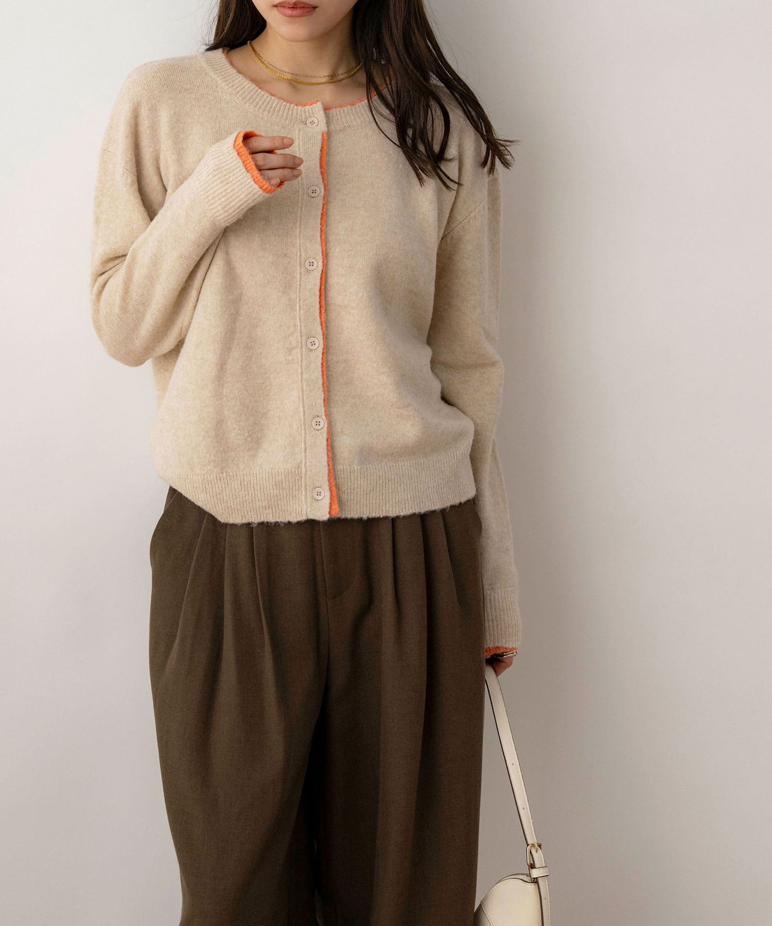 NOAHL|《4,188円→40%0FFクーポン利用》【メール便】ウォーム ニット 配色 カーディガン 配色 トップス レディース ニットカーディガン 配色ニット ベージュ オレンジ グレー ピンク ブラウン ブルー 冬 秋 ノアル 251119【予約】