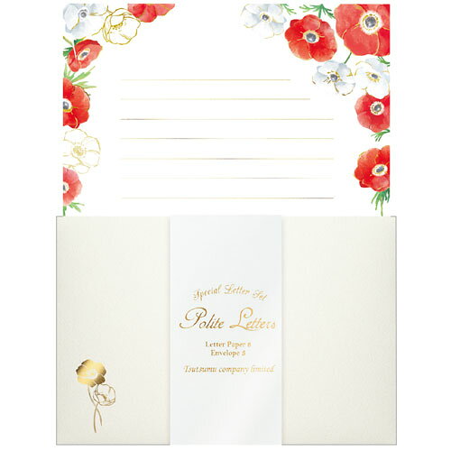 【メール便 * 対象商品3,000以上ご購入で送料無料】[TL0Q6]ポライトレターアネモネ 1セット 春 花 手紙 お便り 文具 雑貨 まとめ買い 金箔押し 包む