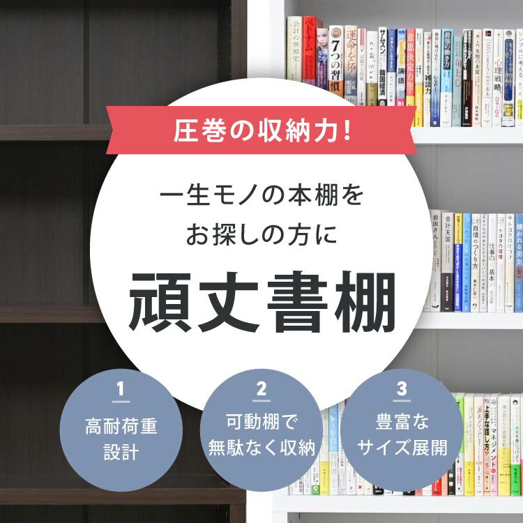 項目 内容 商品名 頑丈書棚 幅60cm サイズ ・本体外寸:幅約59.5奥行約29.5×高さ約186cm ・上部内寸(1列):幅約53×奥行約25.5×高さ約102.5cm ・下部内寸(1列):幅約53×奥行約25.5×高さ約68cm 耐荷重 ・本棚全体:100kg ・可動棚:30kg ・固定棚:35kg 材質 ・本体:プリント紙化粧合板 その他仕様 ・可動棚:3枚(上部27段階/下部16段階:3cmピッチ) 梱包数 2 備考 ・本商品は組立品です。プラスドライバーをご用意ください。 ・お使いのモニターによって商品の明るさや色が多少異なって見える場合がございます。 ・配送料金は地域により異なる場合があります。 ・商品の仕様は予告なく変更になる場合があります。 ・本商品は当店オリジナル商品です。 本棚・シェルフ カテゴリはこちら 【関連ワード】 moca company 頑丈書棚 ディスプレイ 頑丈本棚 頑丈 a4 a4ファイル 薄型 コミック 文庫 文庫本 マンガ 漫画 辞書 雑誌 教科書 収納 b5 b6 b4 30 つっぱり 90 オープンラック ディスプレイラック マガジンラック ブックスタンド 絵本 本収納棚 書斎棚 オープンシェルフ ファイルラック 白 白色 在宅勤務