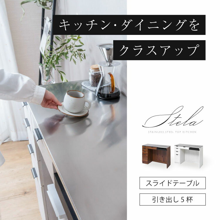 ステンレス天板 キッチンカウンター ゴミ箱上 ラック レンジ台 幅120 キッチンラック ゴミ箱上収納 レンジラック レンジボード 間仕切り 食器棚 ロータイプ 引き出し 作業台 北欧 木製 おしゃれ シンプル
