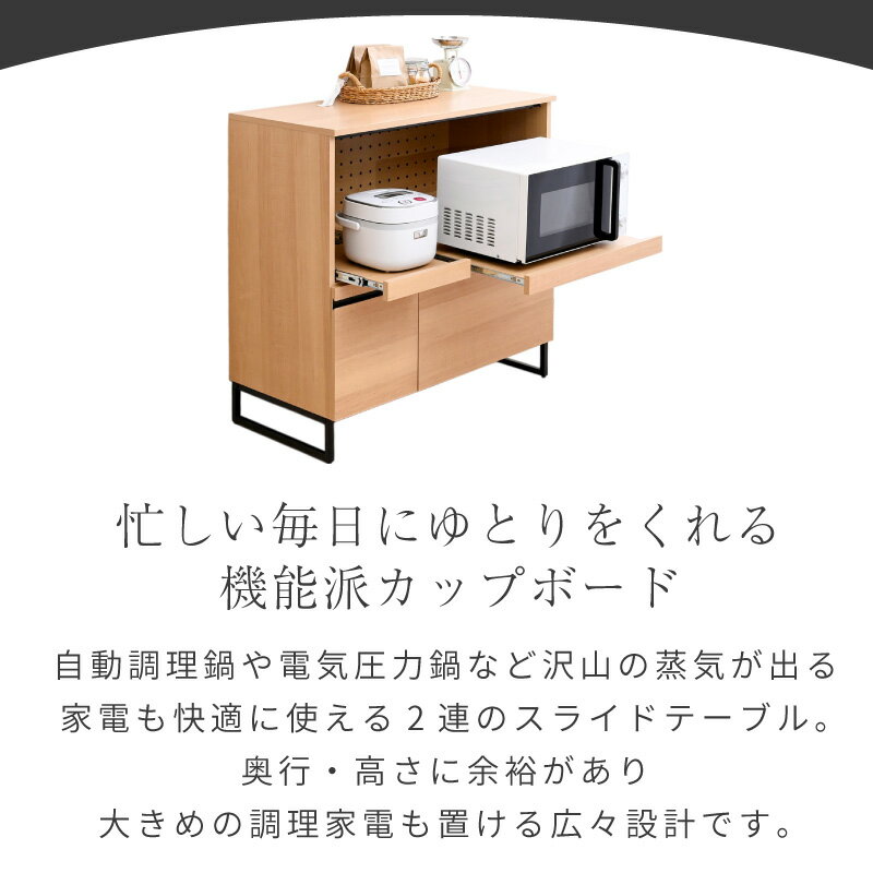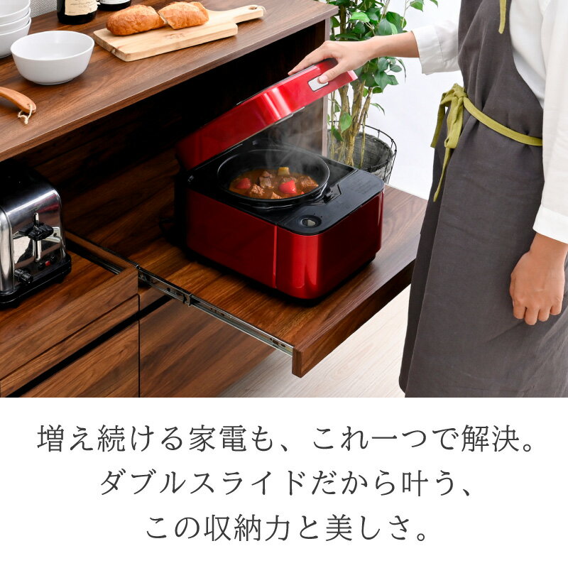 ダブル スライド棚 レンジ台 幅90 スライドテーブル 2か所 コンセント付き 大型レンジ対応 家電収納 レンジ 炊飯器 ラック 食器棚 カップボード キッチン収納 北欧 おしゃれ 木製 引き出し コンパクト 奥行45