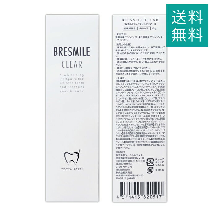 ブレスマイル BRESMILE ブレスマイルクリア 60g 薬用歯磨き粉 歯磨き粉 歯のヤニ 歯石 虫歯予防 歯周病 歯周炎 歯肉炎 口臭 [医薬部外品]