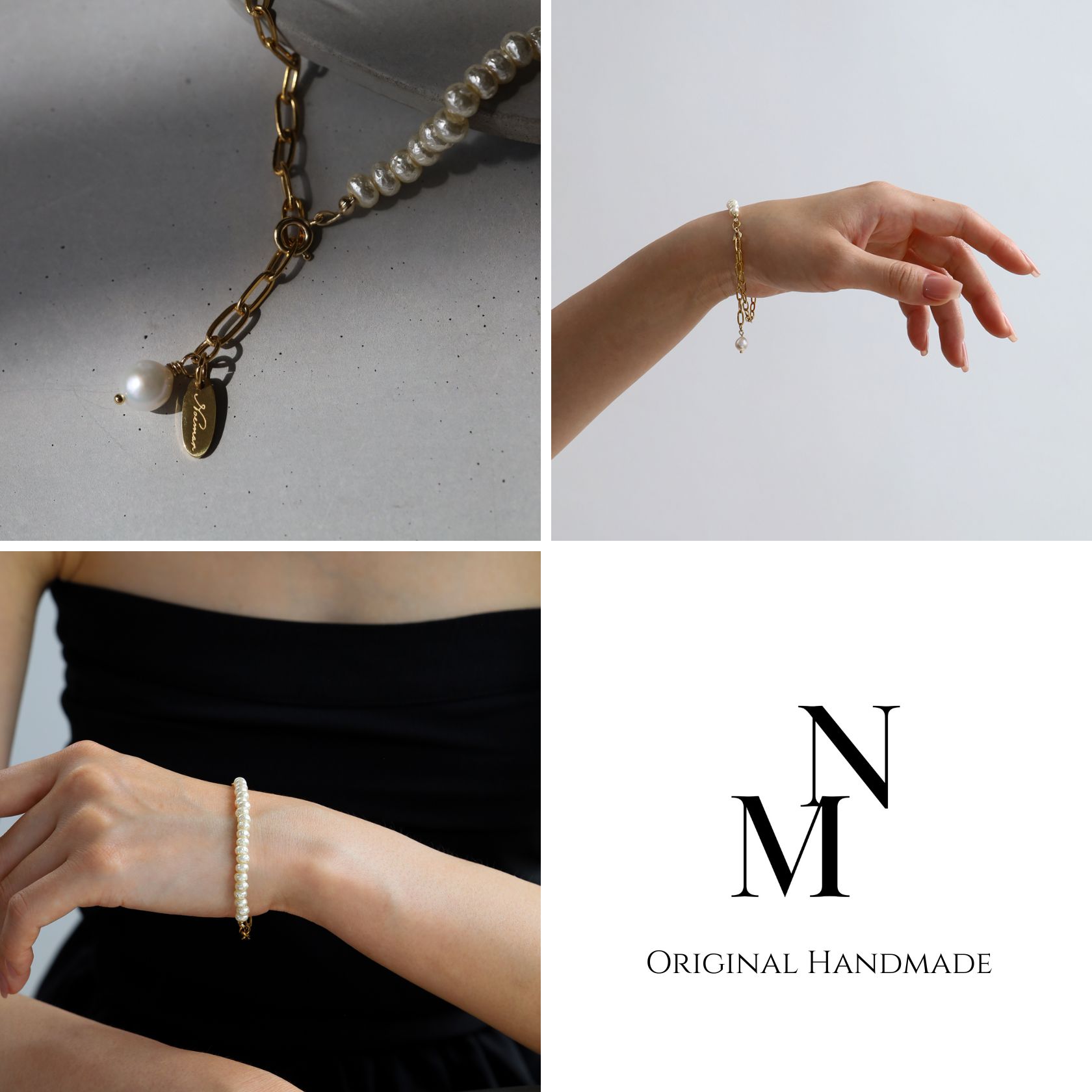 ブレスレット ハンドメイド レディース ステンレス チェーン パール 大人 かわいい 日本製 レディース アクセサリー シルバー ゴールド 女性 大人 彼女 誕生日 プレゼント