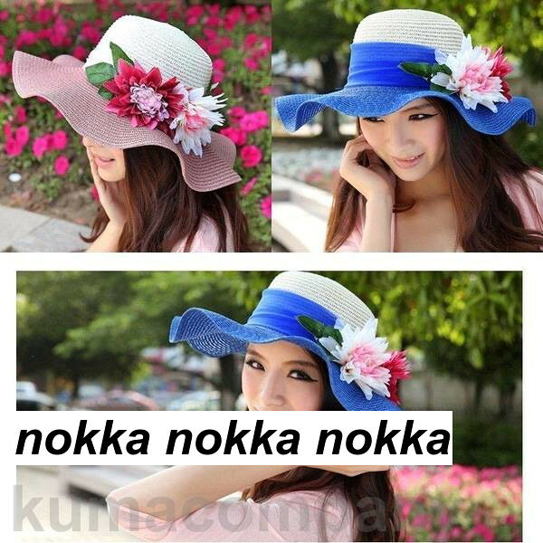 レディースファッション麦わら帽子 ストローハット ぼうし 波型 リボン 花 フラワー 女性用 つば広 おしゃれ 日よけ 紫外線対策 UV対策 リゾート