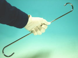 お手軽に何かを引っ掛けるのあればこのSカンです。 鉄にクロームメッキを施した、S字フックです。 【このシリーズのSカンのサイズ(約)一覧(単位:ミリ)】 呼称 全長 円部分の直径 入り口 線径 使用荷重 (参考値) A B C D E 4×85 85 35 35 20 20 4 8kgf 5×150 150 42 42 36 36 5 10kgf 6×180 180 42 42 36 36 6 15kgf 6×300 300 42 42 38 38 6 20kgf 6×450 450 42 42 38 38 6 20kgf 業平チェーン(ひょうたん印)の製品です。 【関連商品】 セット販売 4×85 / 5×150 /6×180 / 6×300 /6×450 同じシリーズのステンレス製のSカンはこちら / S字フックのコーナー / スーパーロングSカン / 金具一覧 メール便でのご送付につきまして ■ クロームメッキSカン Q&A ■ Q.よく見ると、一部、クロームメッキが、はがれているように見える部分があるのですが。 A.こちらのページのSカンは、形状とコスト面の問題から、 「回転式」のクロームメッキ作業ができず、「吊り下げ式」のメッキ作業となってしまい、 どうしても接点が必要となり、その位置は、クロームメッキが 載らない状態になってしまいます。 ただ、こちらのページのSカンはすべて、鉄の上に、 「銅メッキ、ニッケルメッキ、クロームメッキ」という三段階での メッキが施されているため、すぐに錆びてしまうという心配は、 ございませんので、ご安心ください。 ※メーカーによりますと、メッキの工場が二ヶ所あり、LOTによっては 「ニッケルメッキ、ニッケルメッキ、クロームメッキ」となる場合もございます。 いずれの場合も、ニッケルメッキがむき出しになっている部分はございますが、 鉄がむき出しの部分はございませんので、ご安心ください。