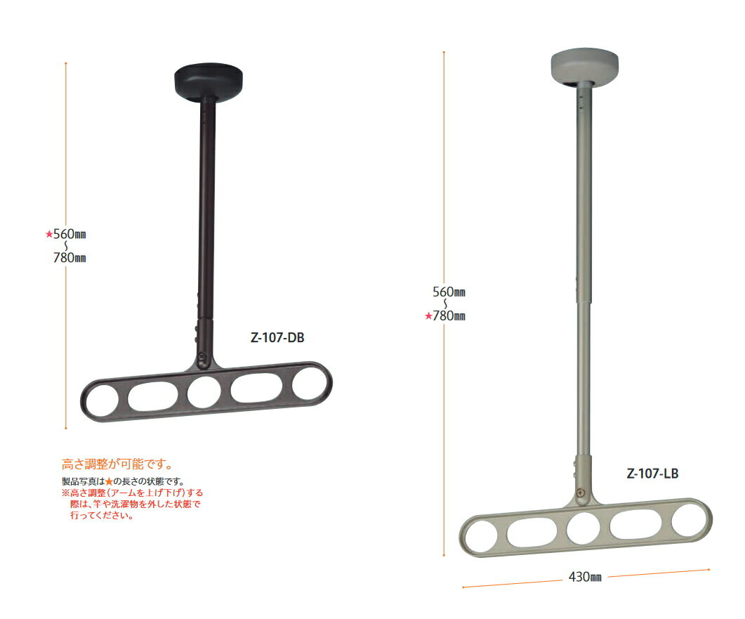 ホスクリーン Z型 Z-107 2本セット ライトブロンズ/ダークブロンズ 軒天用物干 ロングサイズの1本シャフトタイプ 送料無料 物干し金物 物干し金具 天井吊り下げタイプ 洗濯物干し 屋外ベランダ ものほし 川口技研