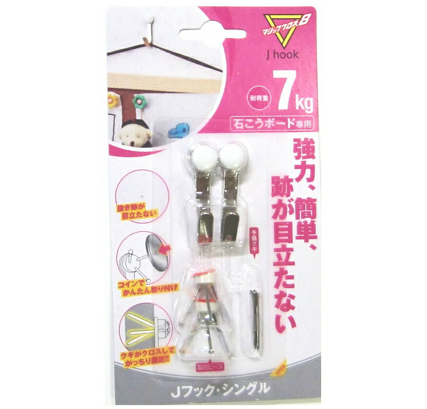 石こうクギ Jフック・シングル 石膏ボード専用 釘がクロスして壁にガッチリ固定!2個入り 12セットまで1通のメール便可 石こうボードに引っ掛ける 壁に大きな穴を開けない金具 細い釘タイプのネジ止め 賃貸に