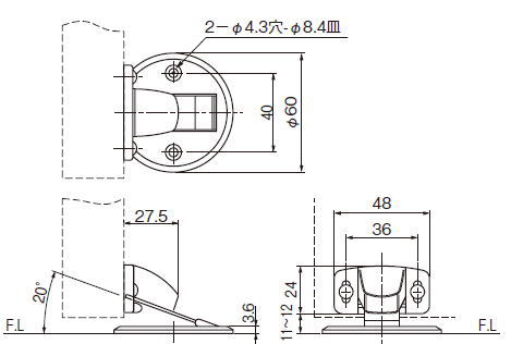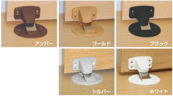 ■ 用途と特長 ■ ・床面にスッキリ設置でき、扉がマグネットで止まる戸当たりです。 ・受(床側)は面付タイプで、床面加工は不要です。(掘り込む必要がありません) ・キャッチ機能付きで、アオリ止め操作(ドアを開けたままにすること)が、立ったままできます。 ・固定式戸当たりよりも、突起が少ないので、足をぶつけてしまうリスクが少ないです。 ・本体の取り付け位置が簡単にわかる、厚紙のゲージ付きです。 (キャッチ機能がちゃんと作動するように、位置を正確に取り付けてください) 材質:ポリアミド6樹脂。 スチール(マグネットにつく部分の厚み1.5ミリ) マグネットはネオジムタイプなので、見かけ以上に強力です。 スチール十字穴付きトラスタッピングネジM3.5×20 スチール十字穴付きノンプラグビスM4×25付き (頭は本体と同色) 重さ36g カラーは5色 ※ゴールドは、実際はおうど色になります。 シルバーは、実際はねずみ色になります。 ※フローリングの色が、特に黒に近いようなダークブラウンの場合、 アンバーよりもブラックの方が目立ちにくいです。 杉田エースの製品です。取り付け説明書付き。 【関連商品】アウトレット戸当りのコーナー / 涙目(クリアバンパー) ドアストッパー / DIY・日曜大工で「便利・安心・快適」生活♪