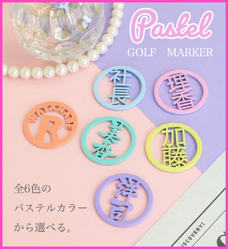 ゴルフマーカー 名入れ おしゃれ 【6営業日で発送】 漢字2文字 ローマ字表記 対応 ステンレス切り文字 【ゴルフ マーカー 名入れ パステル 1枚】 ボールマーカー 名前 レディース プレゼント ホールインワン 記念 女性 男性 かわいい オリジナル 推し活 敬老の日 GHOGolf