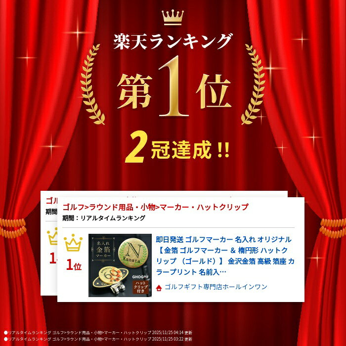 即日発送 ゴルフマーカー 名入れ オリジナル 【 金箔 ゴルフマーカー & 楕円形 ハットクリップ (ゴールド)】 金沢金箔 高級 箔座 カラープリント 名前入り マグネット オリジナル 長寿 古希 退職祝い プレゼント 記念 GHOGolf