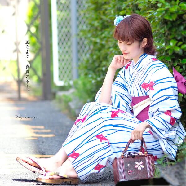 浴衣 レディース 単品 大人 大人浴衣 女性浴衣 浴衣単品 ゆかた フリー レトロ モダン 金魚 ホワイト 白