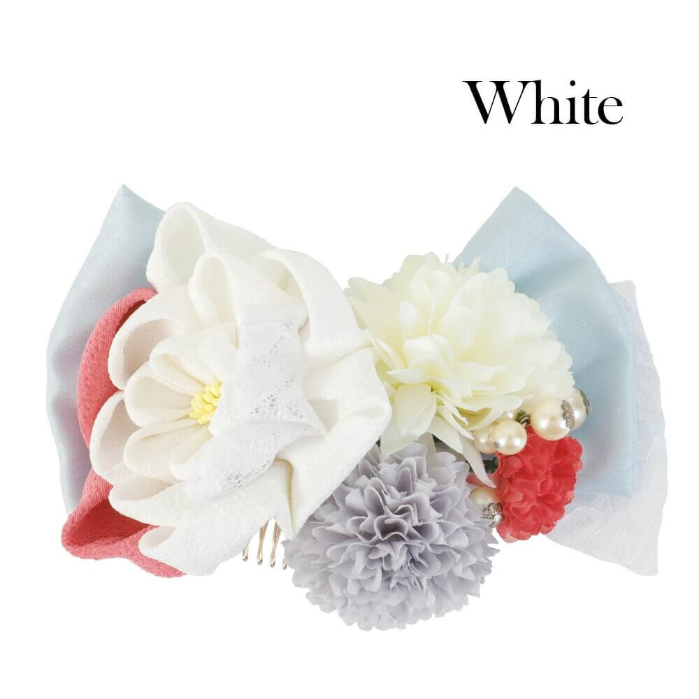 髪飾り 成人式 つまみ細工 白 ピンポンマム 花 コーム 卒業式 振袖 ちりめん レース 七五三 着物 和装 ラベンダー