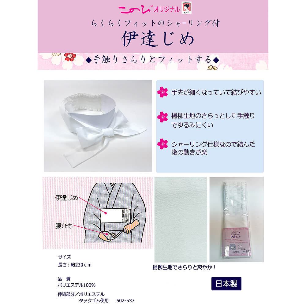 伊達締め シャーリング 楊柳 ホワイト 通年 オールシーズン 和装下着 便利小物 着付け小物 和装小物 着物 メール便5ポイント