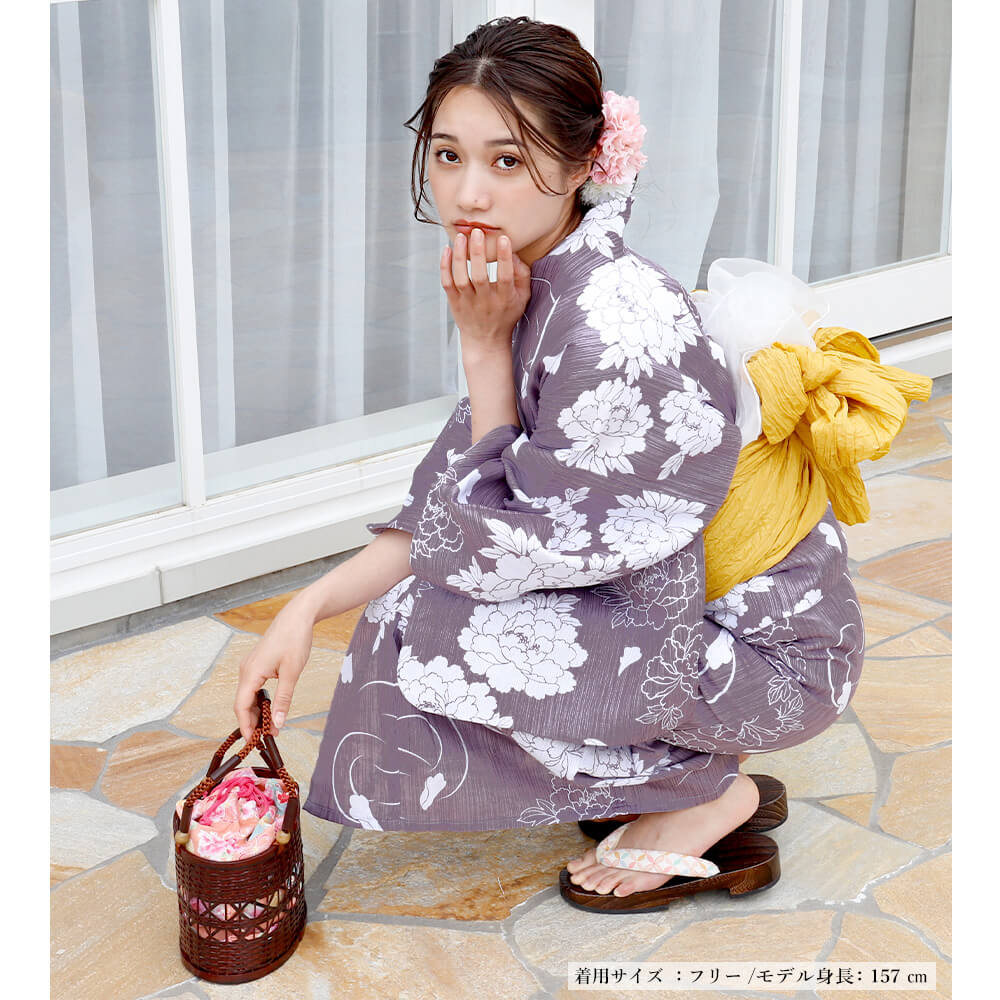 浴衣 レディース 女性浴衣 単品 浴衣単品 ゆかた 大人 綿麻 上品 個性 しっとり 白 モーブ 牡丹 ぼたん 花柄 パープル