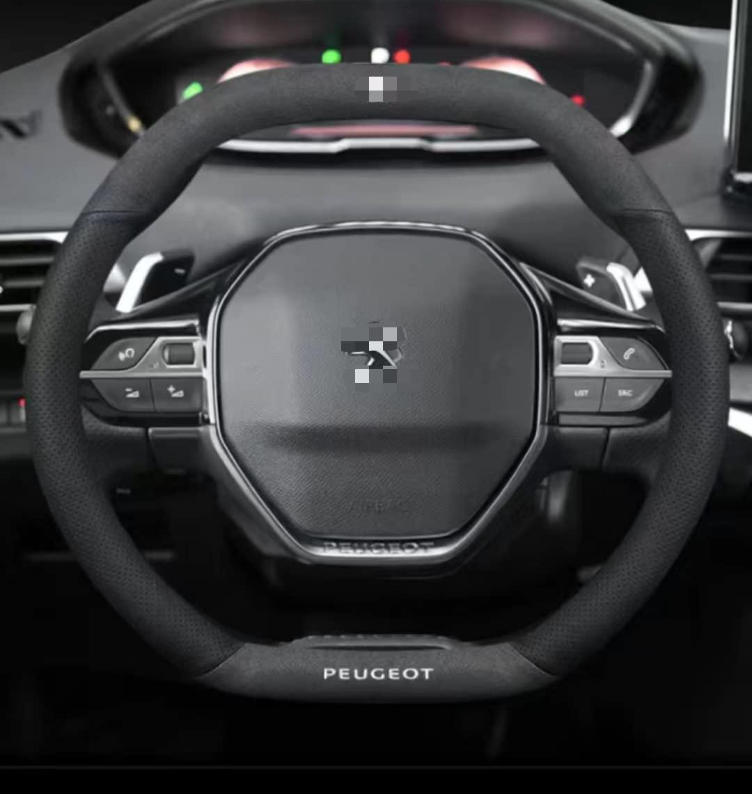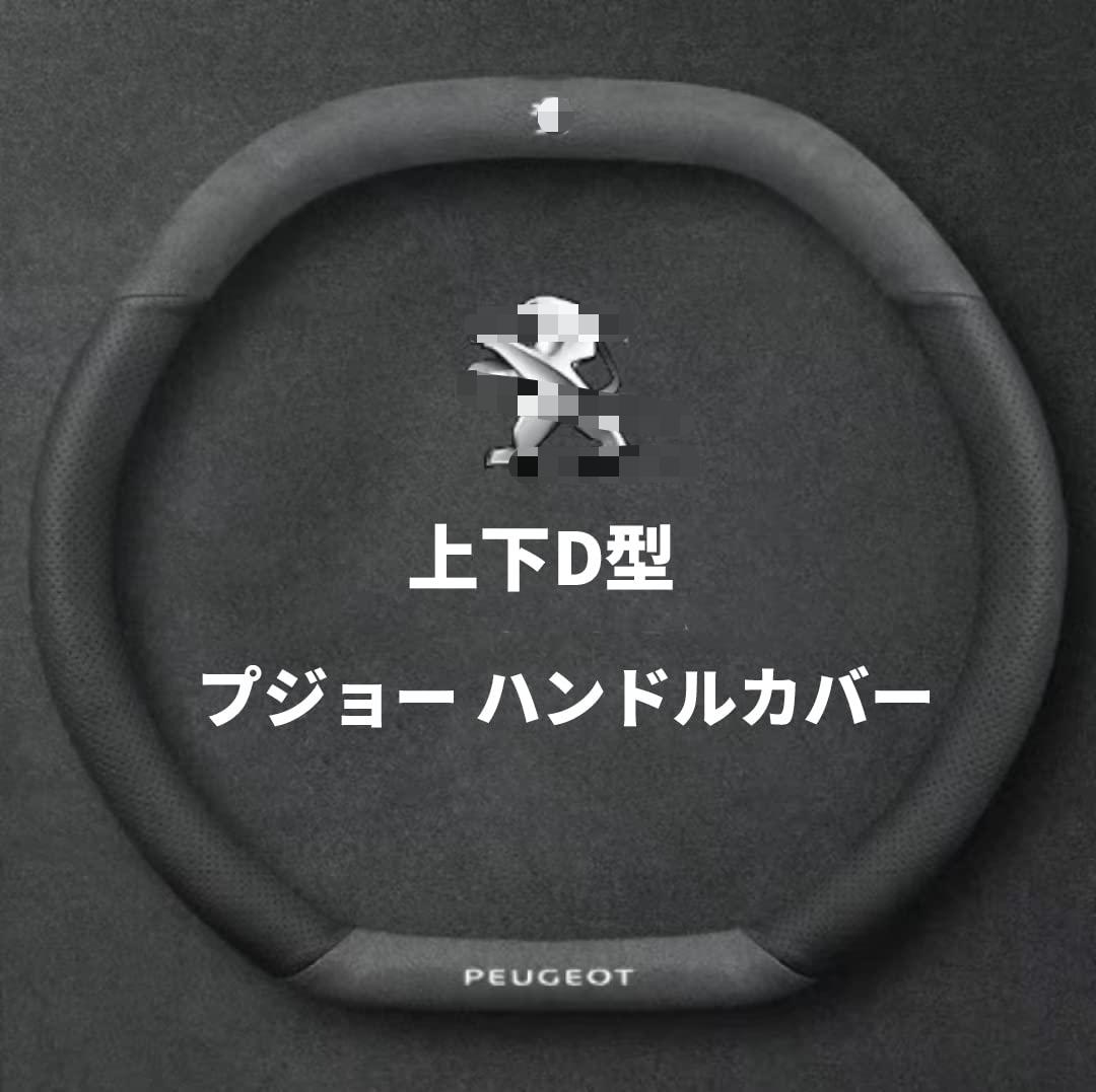 プジョー 2008 ステアリングカバー ハンドルカバー SUV 308 208 2008 3008 5008 本革 内装品 高級 牛革 専車ロゴ スエード+本革 メッシュデザイン 38CM(Mサイズ) (プジョー上下D型 ブラック)
