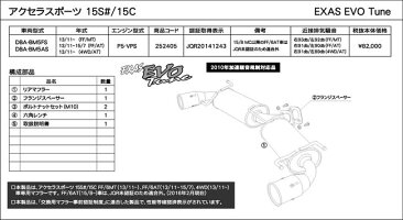 商品名:EXAS EVO Tune 適合車種:マツダ アクセラスポーツ15S/15C 車両型式:DBA-BM5FS/DBA-BM5AS エンジン型式:P5-VPS トランスミッション:6MT/6AT 駆動方式:FF/4WD ※BM5FS(FF車)の2015年8月MC後の6AT車両はギア比変更の為、未対応 リアピース交換タイプ・1分割 メインパイプ:60φ (SUS304) リアタイコ:160×120mmオーバル (SUS304) テール:90φ (チタン) 近接排気騒音:右93db/左92db(FF/MT) 右91db/左90db(FF/AT) 右91db/左89d(4WD/AT) 【付属品】 取扱説明書 フランジスペーサー、ボルト・ナット他 六角レンチ(テール調整用) ステッカー 本製品は『マフラー加速騒音規制』に適合した車検対応マフラーです。通常、排気音量を効果的に下げるにはサイレンサー内のパイプ径を細くしたり、サイレンサー内部に排気抵抗を設ける方法が多くとられます。 マフラー排気音を消音させる最もオーソドックスな方法ではありますが、マフラー自体の排気効率を低下させる事にも繋がってしまい、本来のパフォーマンスを100パーセント発揮する事ができません。GP SPORTSではそれらのジレンマを解消するべく新開発のパワーチャンバーを用意し、エグザスエボチューンに標準装備しました。パワーチャンバーは、内部で壁面に反響した排気脈動と入ってくる排気脈動とが互いにぶつかり合い相殺する事で消音効果を発揮します。 チャンバー内で効率良く消音させる事ができるので、マフラー本体の排気抵抗を極力排除する事ができ、ストレートマフラーと同等の排気効率を実現しました。JASMA基準音量に抑えながらも、シリーズ最強のパワーアップを実現しました。