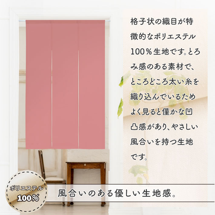 ▼他の「割れ数」はコチラから▼ 商品仕様 サイズ 幅30〜260cm、丈30〜240cm 素材 ポリエステル 100% 生産地 群馬県桐生市 詳細 ■ところどころ太い糸を織り込んでいるためよく見ると僅かな凹凸感があり、やさしい風合いを持つ生地です。 ■2か所割れ目のある、3つ割れののれんです。 ■程よく光を通しますが透けにくいです。 (光っている電気や、明るい窓の形がわかります。) ■直径約3.5cmまでのポール(棒)を通すことができます。 (※つっぱり棒をご使用の場合は、両端のキャップの太さも考慮してください。キャップが取り外せるものもございます。) 注意 ■キャンセル・変更・返品・交換ができませんのでお間違いのないようご注意ください。 ■モニターの発色の具合によって実際のものと色が異なる場合があります。 ■生地の特性や裁断・縫製作業での若干の歪みなどにより、仕上がりサイズに最大2cm程度の誤差が生じることがあります。 こんな使い方ができます 目隠し ・玄関に掛けてお客様や宅配ドライバーから目隠し ・収納の目隠し ・店舗でバックヤードを目隠し ・飲食店で厨房を目隠し 仕切り ・扉がない部屋を間仕切り ・広すぎる部屋を仕切って省エネ、節電 ・リビング階段を仕切って防寒 入口に掛けて ・お店の営業中の合図 ・表札、看板として ・ドアプレート、ルームプレート替わり ・トイレサインとして インテリアに ・部屋の装飾 ・壁に飾る(タペストリー、アート) ・好きな作家、キャラクターのコレクション ・模様替え ・壁の汚れ隠し 感染症対策にも ・換気のために扉を開けてのれんを掛ける ・簡単な飛沫防止策に ・部屋の中でも季節感を楽しむ こんな場所に使えます ご家庭で 玄関 廊下 階段 キッチン 台所 リビング ダイニング 居間 客間 ベッドルーム 寝室 子供部屋 お風呂 洗面所 トイレ シューズクローク クローゼット 押入れ 棚 パントリー 施設、オフィスで 介護施設 老人ホーム 商店 店舗 飲食店 料理店 レストン 料亭 食堂 喫茶店 居酒屋 スナック 温泉 旅館 ホテル ペンション 厨房 事務所 バックヤード スタッフルーム 更衣室 ギフトにもオススメ 季節のイベント お正月 お年賀 御年始 バレンタイン ホワイトデー ひな祭り 端午の節句 こどもの日 母の日 父の日 敬老の日 クリスマス お祝い 引っ越し祝い 新築祝い 出産祝い 結婚祝い 誕生日 バースデー ハーフバースデー 七五三 入学祝い 卒業祝い 合格祝い 成人 昇進 昇格 就任 退職 長寿祝い 還暦 古希 喜寿 傘寿 米寿 卒寿 白寿 百寿 開業祝い 開店祝い 開院祝い 周年祝い 周年記念 内祝い、お返し 結婚内祝い 出産内祝い 初節句内祝い 新築内祝い 快気内祝い 入園内祝い 入学内祝い 進学内祝い 病院見舞いのお返し お礼 こんな場面でも ご挨拶 挨拶回り 異動 転勤 移動 配置転換 部署異動 転職 手土産 心ばかり 寸志 新歓 新入社員 歓迎 送迎 歓送迎会 新年会 忘年会 暑気払い 二次会 景品 餞別 海外土産