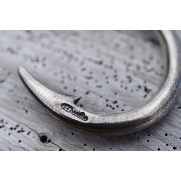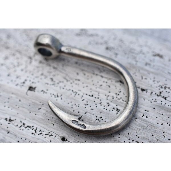 ■ Ssize 25mm × 15mm 素材:シルバー925 ■ Msize 35mm × 25mm 素材:シルバー925 ■ Lsize 45mm × 30mm 素材:シルバー925 エルドラドの釣り針ネックレスは余分なデザインを施すことなく、忠実に釣り針をイメージしてデザインしております。Lサイズ、Mサイズ、Sサイズを重ねて身に付けることでツインフックとして、その他のネックレスとの重ね付けなど表現の仕方は自由です。 ピカピカに仕上げずあえて黒ずんだ質感のマッド加工を施すことによって、釣り針本来の光沢を表現しています。そのため研磨剤入りのクロスで磨きすぎるとマット感が失われ輝きがでてしまいますのでご注意ください。 1点1点人間の手で心を込めて仕上げています。写真とは仕上がりの状態やロゴ刻印の位置などが若干異なりますので予めご了承ください。 写真のチェーンは付属されません。 <ご購入に際してのご注意> 本商品によって以下のような事故が考えられます。 ■ 金属アレルギーを引き起こす ■ お子様の誤飲 ■ 尖った部分で人体に及ぼす外傷 商品のご使用により発生した事故や怪我、病気等につきまして弊社では一切の責任を負いかねますので何卒ご了承願います。※ 掲載商品につきましては、店頭在庫(実店舗)と共有しております。 「在庫有り」の表示があっても、ご注文後に欠品が発生する場合が御座います。完売や欠品の場合は、誠にご迷惑をおかけ致しますが予めご了承下さいませ。