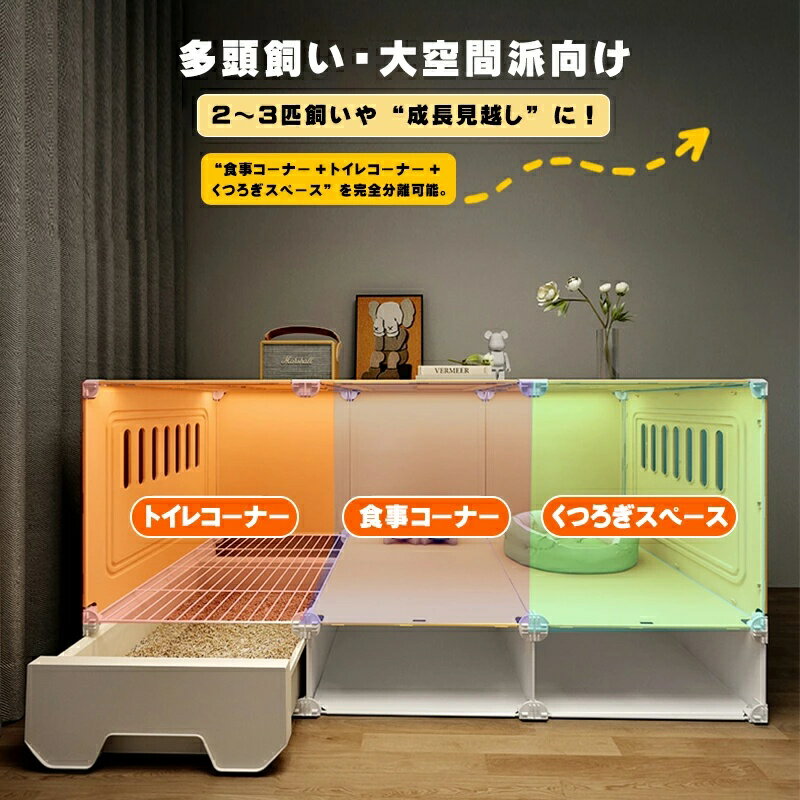 うさぎケージ 小動物ケージ 飼育ゲージ 猫用 大型 トイレ付き おしゃれ 家庭用 観賞用 屋根付き 引き出しトイレ 組み立て簡単 掃除しやすい 通気性 小動物 モルモット チンチラ うさぎ フェレット ハリネズミ ハムスター用 家庭観賞用ウサギケージ うさぎ ケージ ウサギ 小動物 モルモットケージ モルモットでもご利用 1人でも設置 移動と分解と組み立てが簡単 5