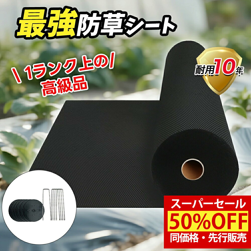 透水性に加え、地温の安定と保温に大きな効果を発揮し、高い遮光性によりハウス内などの防草用としても最適です。通路のぬかるみ防止などにも利用できます。 *使用条件により防草効果に差があります。*農業以外で使用される場合ご相談下さい。 ワンポイント:防草シートおすすめの敷き方のご紹介防草シートの効果を最大限に発揮し、より長持ちさせる為のコツをご紹介します! ステップ1.除草剤の散布 防草シートの敷設前に除草剤をしっかり散布します。 根も葉も枯らすコンパカレールをおすすめします。ステップ2.雑草の刈り取り 1週間程度間を置き雑草が茶色に枯れていれば刈り取り片付けます。 ステップ3.硬い物の除去してからシートを敷設 でこぼこしていないか硬い物などが無いか確認し防草シートを敷きます。 ステップ4.固定ピンを使ってしっかり固定 固定ピン(黒ばんちゃんをおすすめします)を多めに打ち、 シートと地面が離れてしまう面積を減らします。 【日本農業システム楽天市場店について】 お客様に自信を持って、おすすめできる商品のみを取り扱い、上質で安心安全な商品をコスパよくお客さまにお届けしたいと考えております。 ランキング上位商品、人気商品、お得な訳ありアウトレット商品、最安商品、お買い得な値引き、セール商品、ポイント10倍商品等、はお問い合わせが多く、 数に限りがありますので、お早目にお買い求めください。