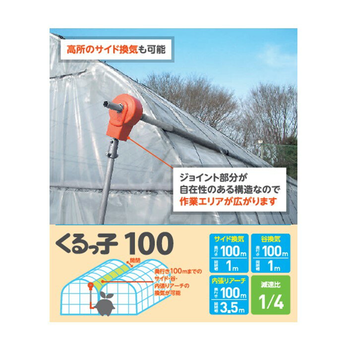 くるっ子100 100m用 誠和 農業用 ビニールハウス用 手動 谷換気 高所換気 内張りフィルム 側面換気 巻上 取付簡単 くるくる ハウス換気 ハウス 巻上 温室 鉄骨
