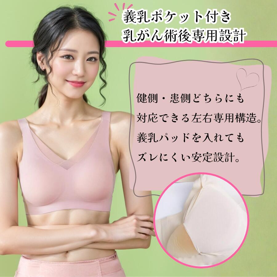 乳がん ブラジャー 全摘 術後 乳がん用ブラ ブレストケア 義乳ポケット付き ノンワイヤー シームレス ブラ 左右兼用 片側用 女性用 胸 術後ケア 一体型 カップ付き 補正 下着 レース U字バック 三段ホック 柔らか素材 大きいサイズ M L XL 2XL 3XL