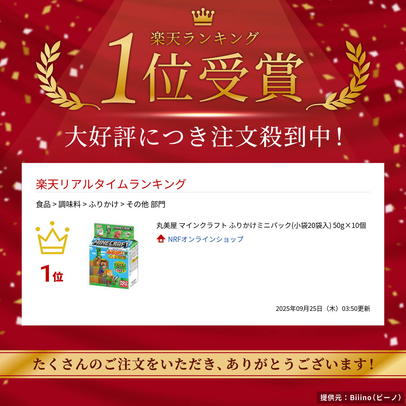 FlavorName:ふりかけミニパック×10個PatternName:10個セット・原材料:[たまご]小麦粉(国内製造)、いりごま、乳糖、砂糖、卵黄粉末、食塩、加工油脂、すりごま、大豆加工品、こしあん、鰹削り節、エキス(チキン、酵母、鰹節、魚介)、還元水あめ、鶏肉粉末、みそ、海藻カルシウム、のり、醤油、鶏脂、乳製品、ぶどう糖果糖液糖、パーム油、イースト、みりん、あおさ、抹茶、デキストリン/調味料(アミノ酸)、卵殻カルシウム、酸化防止剤(ビタミンE)、カロチノイド色素、香料、(一部に卵・乳成分・小麦・ごま・大豆・鶏肉を含む)|・商品サイズ(高さx奥行x幅):8.5cm×30.2cm×19.6cm商品紹介 ・「マインクラフト」のふりかけです。 ・お子様好みの4アイテム(たまご)6袋・(ビーフ)6袋・(さけ)4袋・(野菜)4袋、計20袋を詰め合わせました。 ・小袋分包タイプなので、食卓にもお弁当にも便利。 ・オリジナルキラキラシール1枚入り(全20種)。 シールのデザインはご指定いただけません。また、シールのデザインは重複することがあります。 パッケージのデザインは1種類です。 c 2025 Mojang AB. All Rights Reserved. Minecraft the Minecraft logo the Mojang Studios logo and the Creeper logo are trademarks of the Microsoft group of companies. 原材料・成分 [たまご]小麦粉(国内製造)、いりごま、乳糖、砂糖、卵黄粉末、食塩、加工油脂、すりごま、大豆加工品、こしあん、鰹削り節、エキス(チキン、酵母、鰹節、魚介)、還元水あめ、鶏肉粉末、みそ、海藻カルシウム、のり、醤油、鶏脂、乳製品、ぶどう糖果糖液糖、パーム油、イースト、みりん、あおさ、抹茶、デキストリン/調味料(アミノ酸)、卵殻カルシウム、酸化防止剤(ビタミンE)、カロチノイド色素、香料、(一部に卵・乳成分・小麦・ごま・大豆・鶏肉を含む)| [ビーフ]いりごま(国内製造)、小麦粉、砂糖、乳糖、醤油、食塩、こしあん、調製ラード、牛肉、鶏卵加工品、牛脂、海藻カルシウム、マーガリン、玉ねぎ粉末、大豆加工品、乳製品、ぶどう糖果糖液糖、でん粉、のり、イースト、香味油、エキス(酵母、ビーフ、魚介)、デキストリン、植物性たん白、すきやき風味シーズニング、香辛料、パーム油、ぶどう糖、水あめ/調味料(アミノ酸等)、着色料(赤ビート、カラメル、紅麹、カロチノイド)、セルロース、香料、酸化防止剤(ビタミンE)、香辛料抽出物、(一部に卵・乳成分・小麦・牛肉・ごま・大豆・鶏肉を含む)| [さけ]いりごま(国内製造)、乳糖、砂糖、小麦粉、大豆加工品、食塩、すりごま、鮭、卵黄粉末、加工油脂、エキス(鮭、チキン、酵母、魚介)、還元水あめ、こしあん、海藻カルシウム、鶏肉粉末、みそ、のり、鶏脂、醤油、乳製品、香味油、ぶどう糖果糖液糖、イースト、デキストリン、DHA含有精製魚油/調味料(アミノ酸等)、卵殻カルシウム、着色料(紅麹、カロチノイド)、酸化防止剤(ビタミンE)、香料、(一部に卵・乳成分・小麦・ごま・さけ・大豆・鶏肉を含む)| [やさい]いりごま(国内製造)、乳糖、小麦粉、砂糖、すりごま、食塩、でん粉、加工油脂、卵黄粉末、還元水あめ、にんじん、大豆加工品、鰹削り節、エキス(チキン、酵母、鰹節、魚介)、こしあん、海藻カルシウム、鶏肉粉末、みそ、醤油、のり、ほうれん草、かぼちゃ、鶏脂、乳製品、ぶどう糖果糖液糖、玉ねぎ、パーム油、イースト、あおさ、抹茶、みりん、デキストリン/卵殻カルシウム、調味料(アミノ酸)、着色料(フラボノイド、カロチノイド、クチナシ)、酸化防止剤(ビタミンE)、増粘剤(キサンタン)、香料、(一部に卵・乳成分・小麦・ごま・大豆・鶏肉を含む)