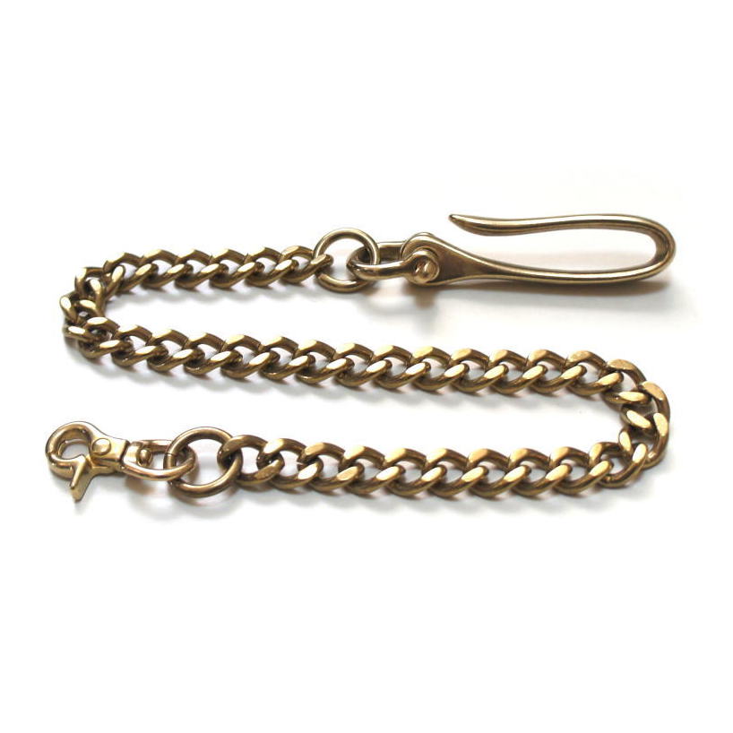 【送料無料】バイカーウォレットチェーン 真鍮無垢ブラス製 ツリバリフック 豆レバーナス付き / 3mm 喜平面取り 46cm ビンテージストリートファッション